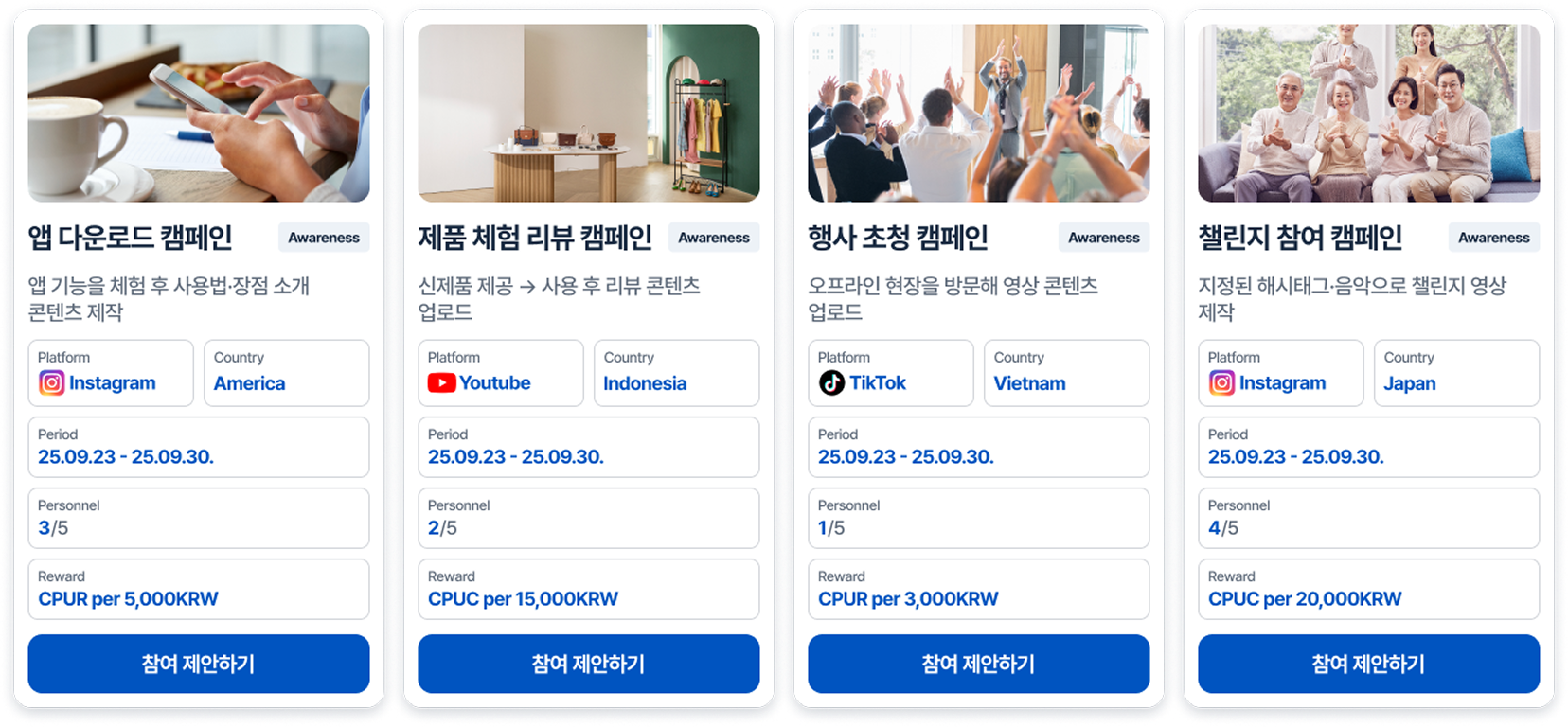 Campaigns across categories such as beauty, gaming, fashion, and lifestyle